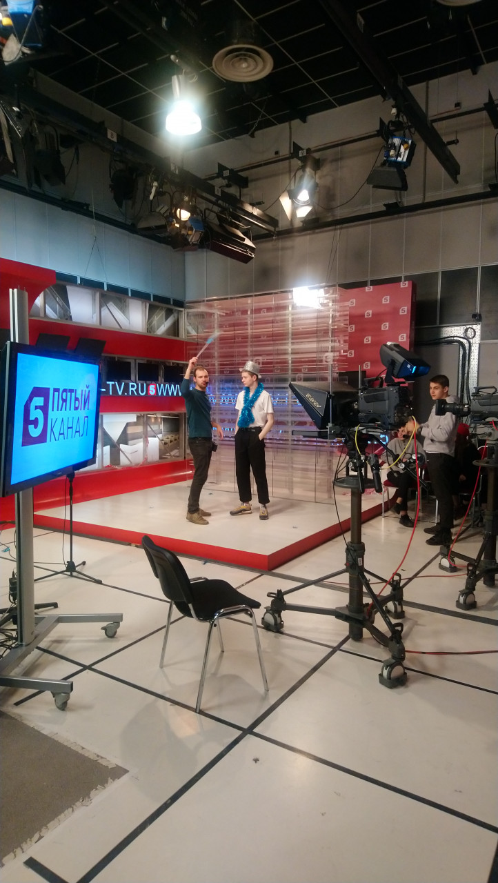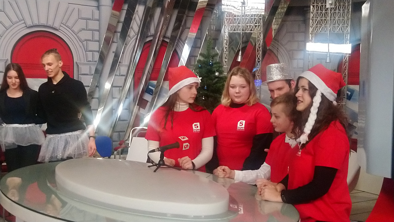 27 декабря ученики 10 Б класса, а также несколько ребят из 7 Б, 9 В и 10 А классов, снимали новогоднее "детективное шоу" на 5 канале, перед этим, во время экскурсии, понаблюдав за слаженной работой команды 5 канала